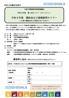 “共に目指す” 脱炭素化に向けた事業者連携 | 「ゼロ力一ボンおおさか」の実現に向け、事業者との連携について知っていただく。更にその事例をお話しし参加者からの意見や提案をお聞 きする。 |